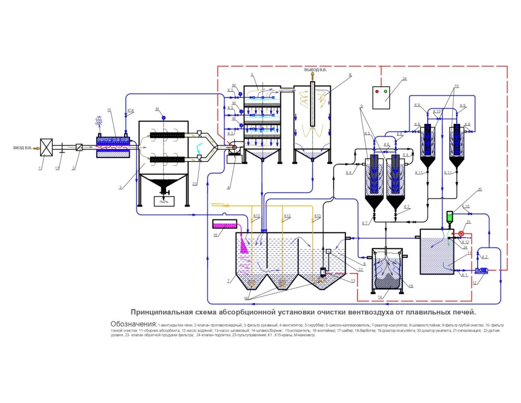 • В принципиальную технологическую схему пылегазоочистки внесены некоторые изменения: